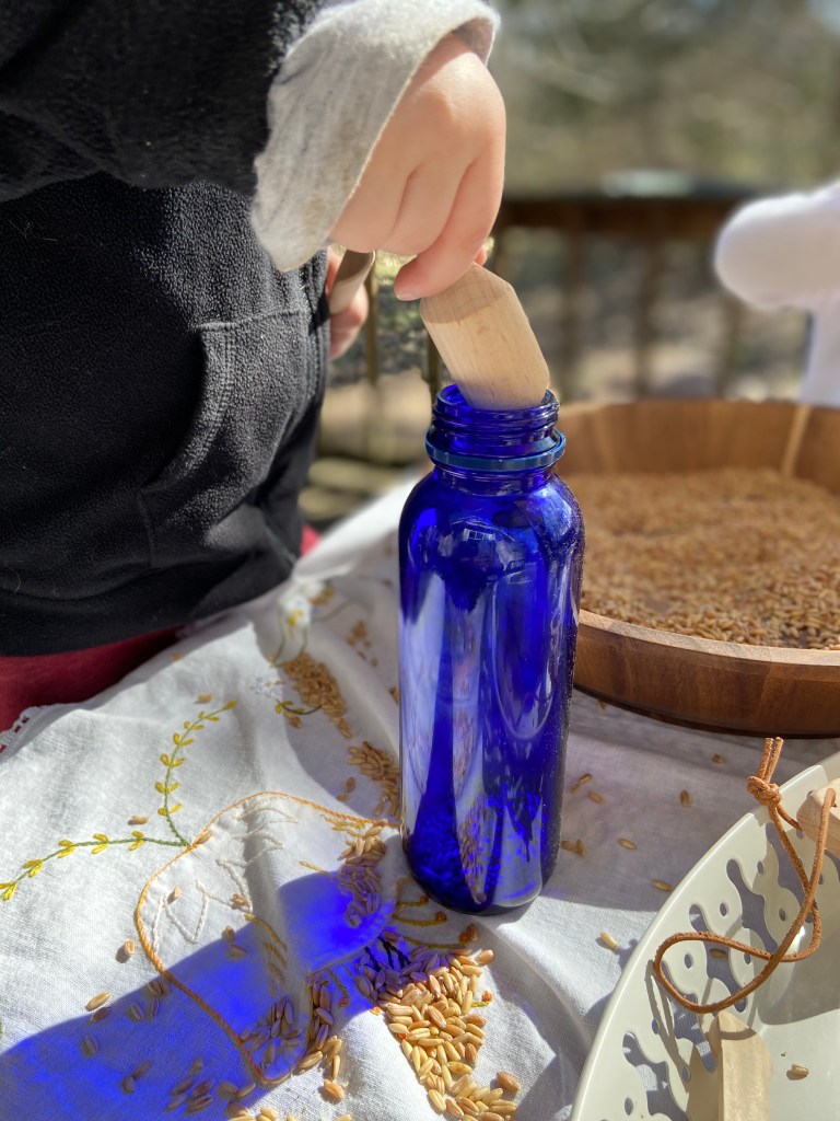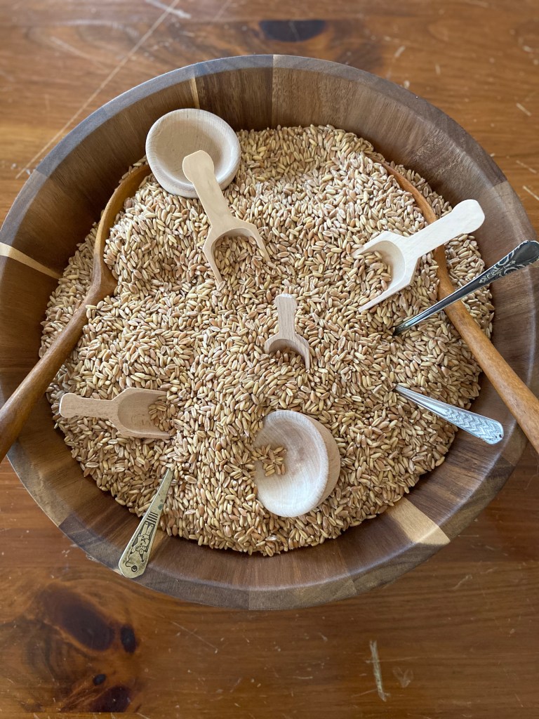 I’ll be sure to keep you posted as I set up other activities using the same materials (be sure to follow me on Instagram!). I’d like to add in sieves of varying sizes with the grain. I’d love to hear your ideas for other ways I might be able to use these materials, so please leave a comment below!