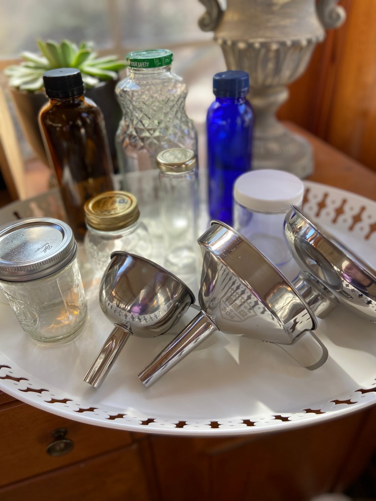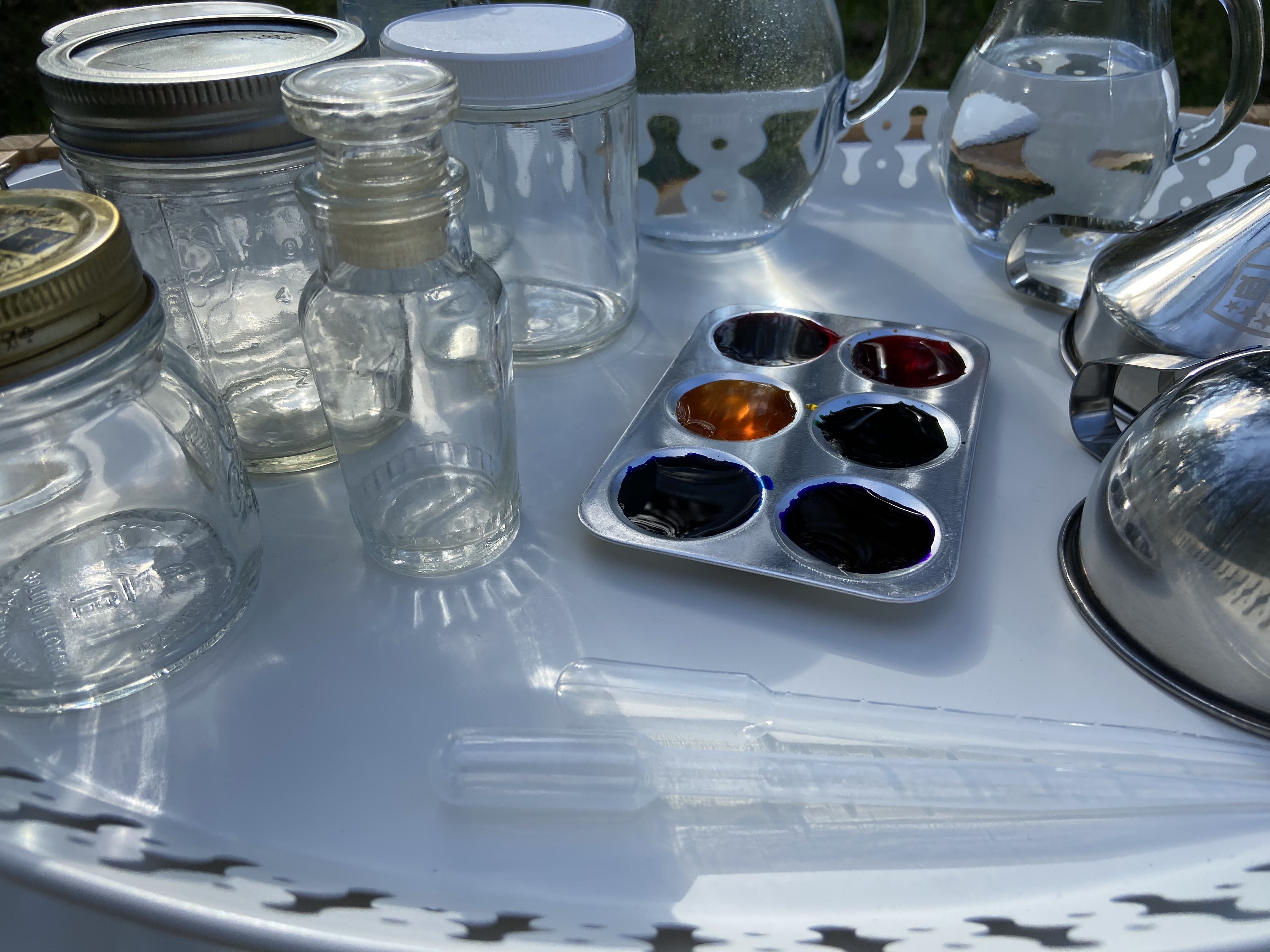 Bottles & Funnels with Oil, Water, & Liquid Watercolors