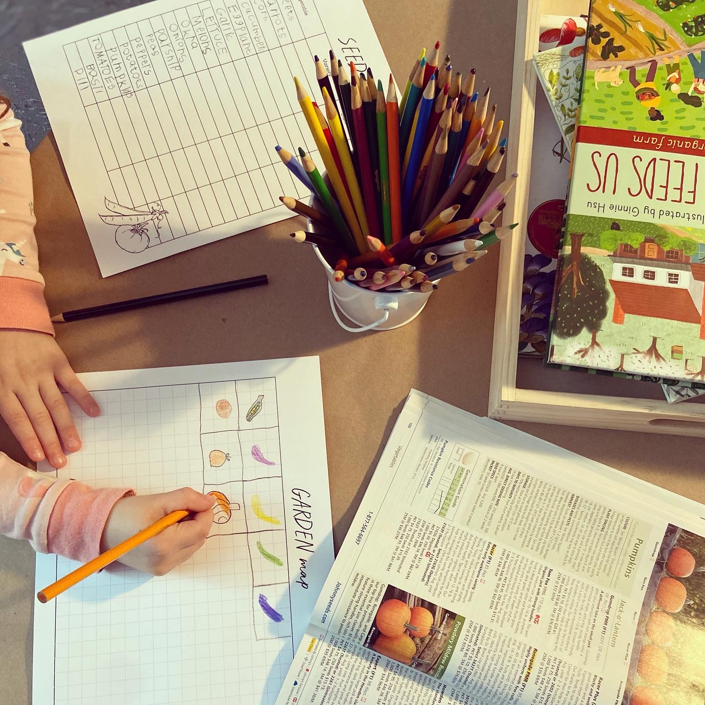 We don’t get to all the things every day. Again, I like having a framework for the days the kids are really receptive, but it’s not set in stone. On a daily basis, we generally do our morning routine, read-alouds (stories, often nature-based, biographies, nonfiction/science/nature books, etc.), attempt some kind of math activity (a game, a patterning activity, cooking, etc.), and some kind of writing/letter recognition/phonics something or other (writing a letter to a friend, our read/build/write board, writing and illustrating a poem). We try for a weekly entry in my daughter’s gratitude journal where she writes something she’s grateful for and why, and then draws a picture of it. At the start of each month, the kids draw their self-portraits, which has been another special tradition carried over from their school. I try to have a special poetry teatime at least monthly (I’d really like this to be a weekly occurrence, but we just aren’t there right now).